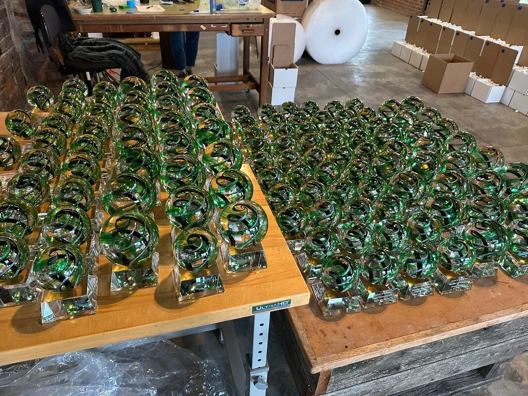 Monarch Glass Studio partners with corporations of all sizes to create memorable glass awards and gifts for clients, employees, and colleagues. We specialize in custom pieces for any event, combining exceptional craftsmanship with meticulous attention to detail. From laser-engraved crystal award bases to custom packaging and logo integration, every piece is thoughtfully designed to reflect your brand and elevate the occasion.