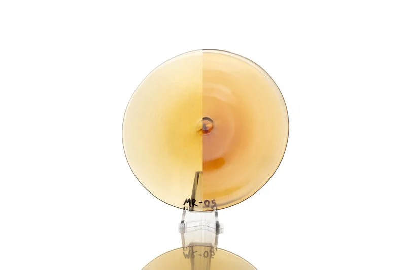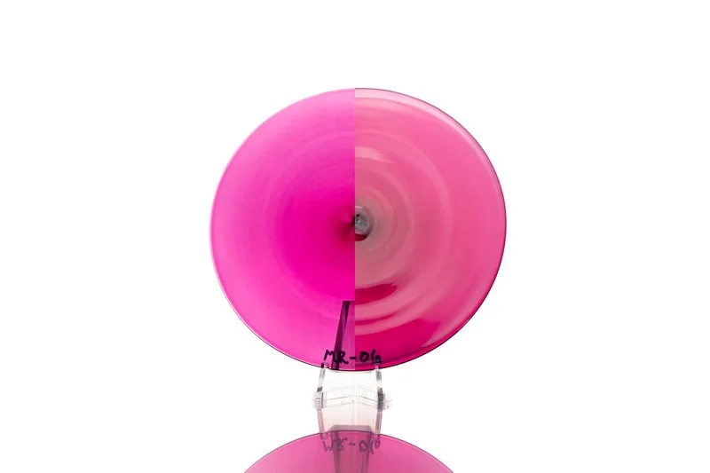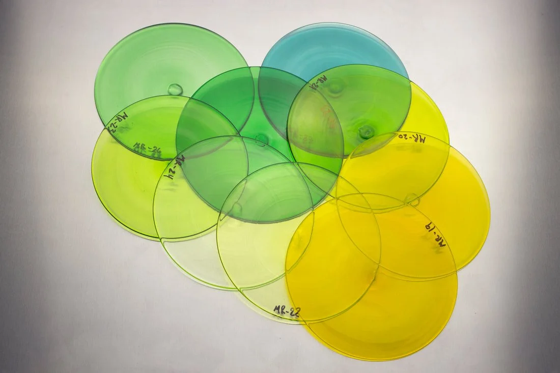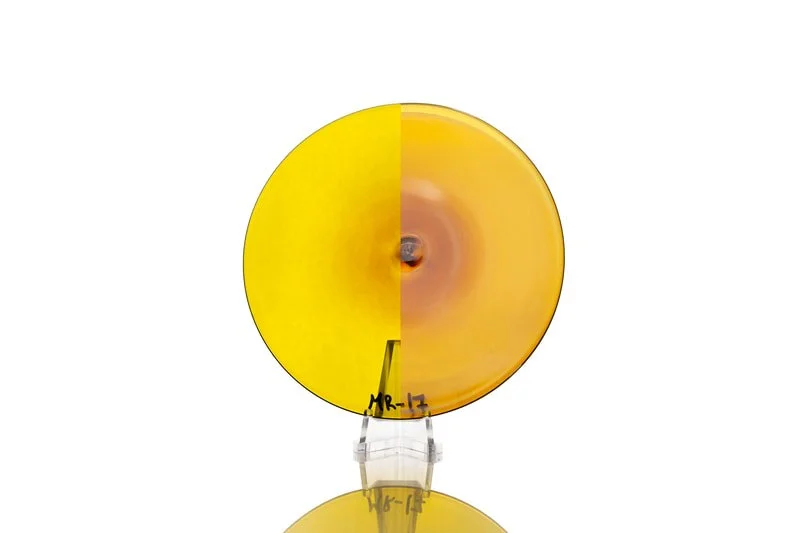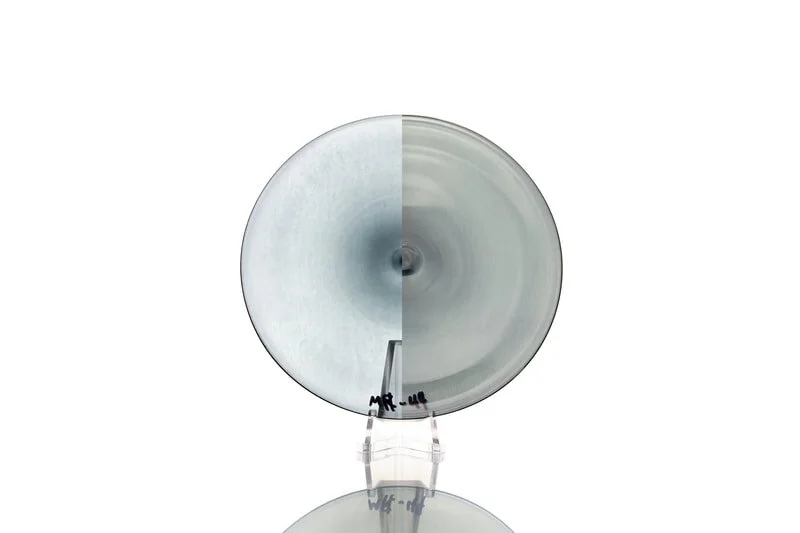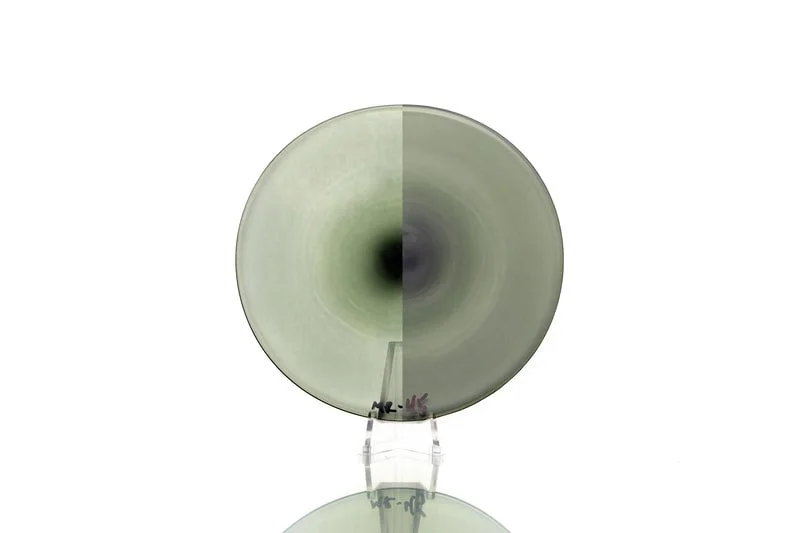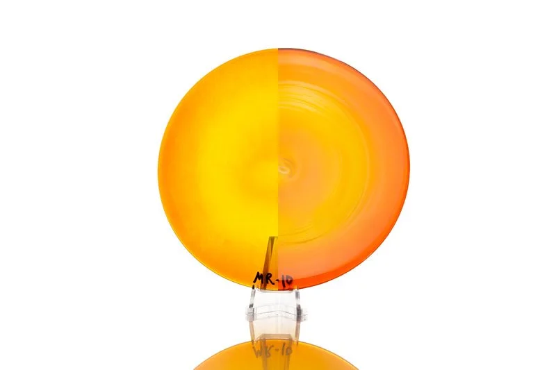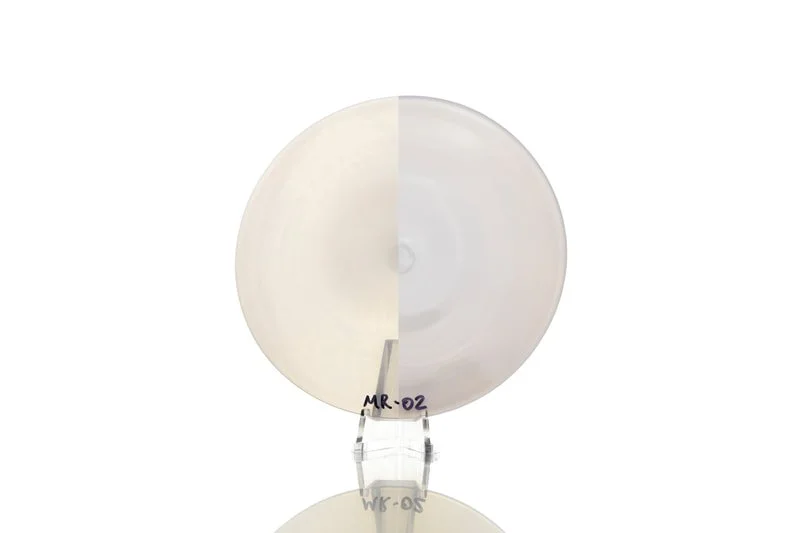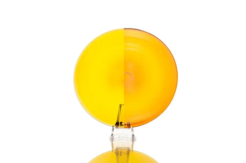 Each Image is split into back-lit and front-lit. The left side represents the color with light passing through and the right side is that of light cast onto it.